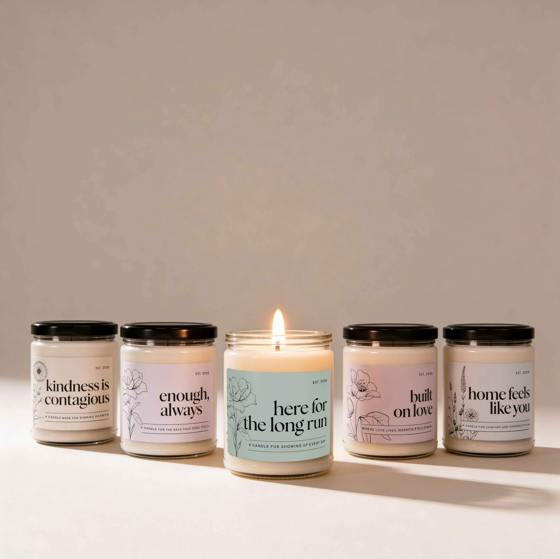 Soft, thoughtful glow in a reusable glass jar. This 9oz soy candle is handcrafted from a 100% natural soy wax blend and a cotton wick for a clean, even burn that lasts 50–60 hours. Choose from twelve curated scents — from crisp Apple Harvest and warm Cinnamon Vanilla to oceanic Atlantis Whisper and the herbal calm of White Sage + Lavender — all infused with natural essential oils. The neutral-label design with delicate botanical art fits a calm, cozy shelf and the glossy adhesive label stays put as the candle becomes a little keepsake vessel once cleaned and repurposed. Made to meet ASTM safety standards and assembled in the USA from globally sourced parts, it gives quiet, lasting light without plastics, parabens, or synthetic dyes.