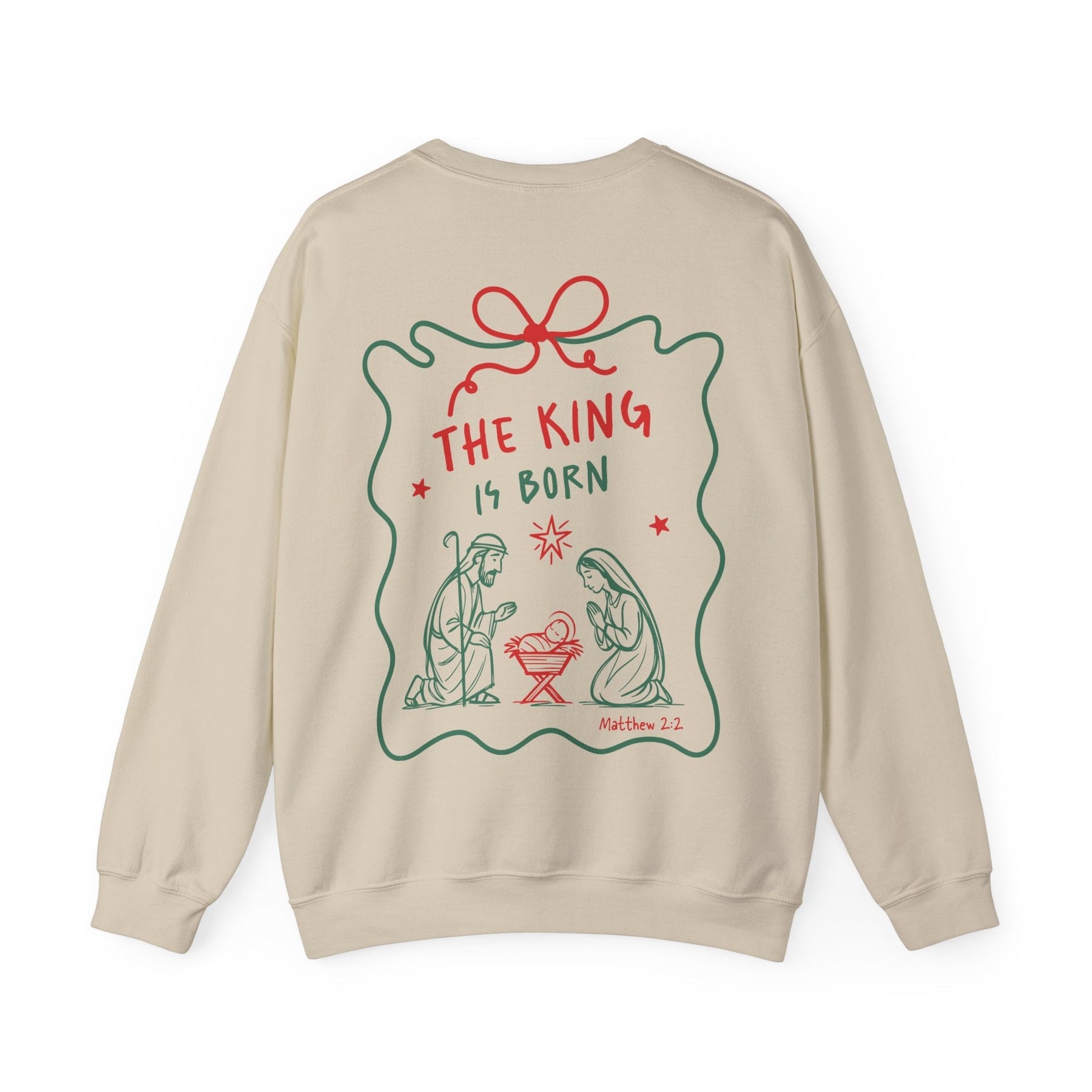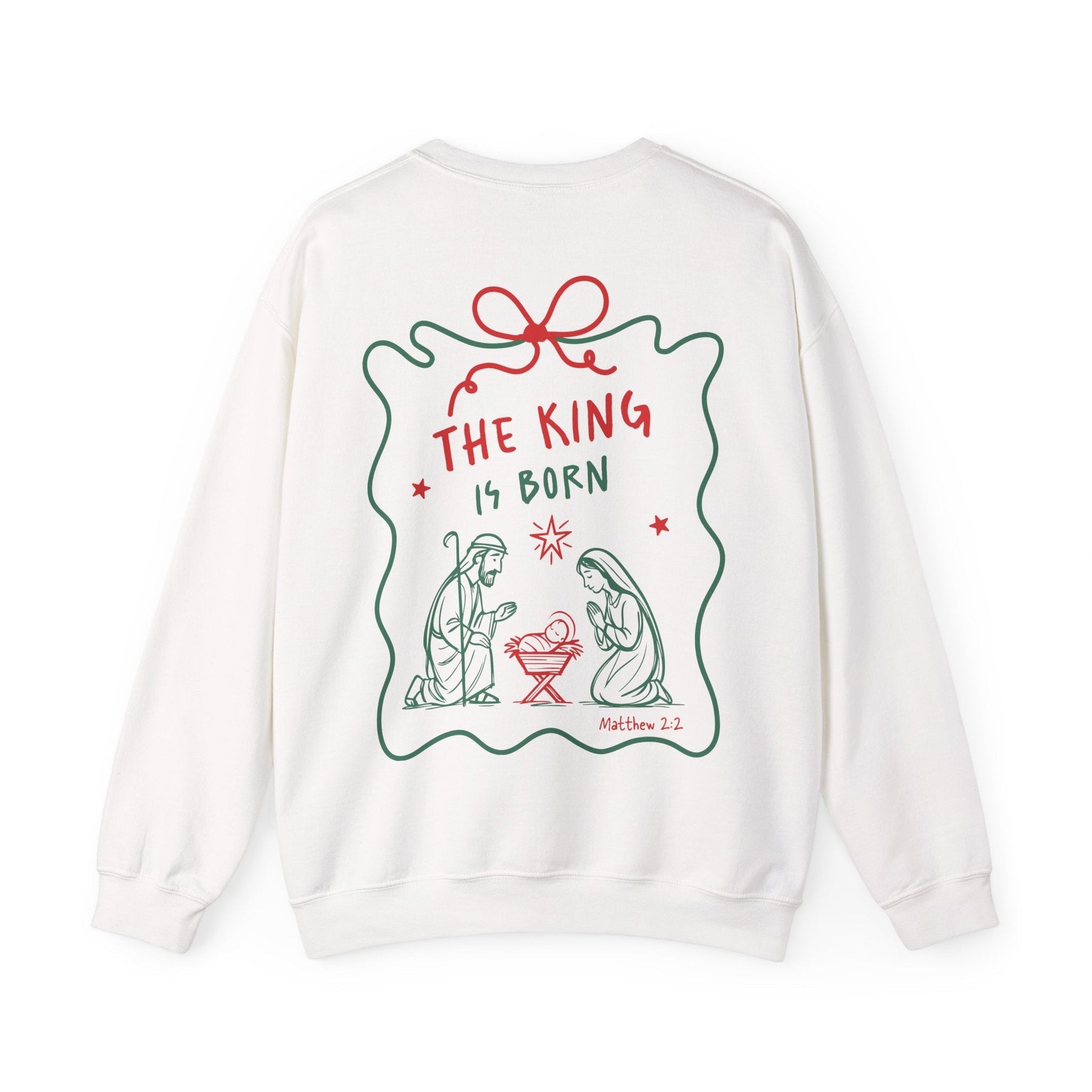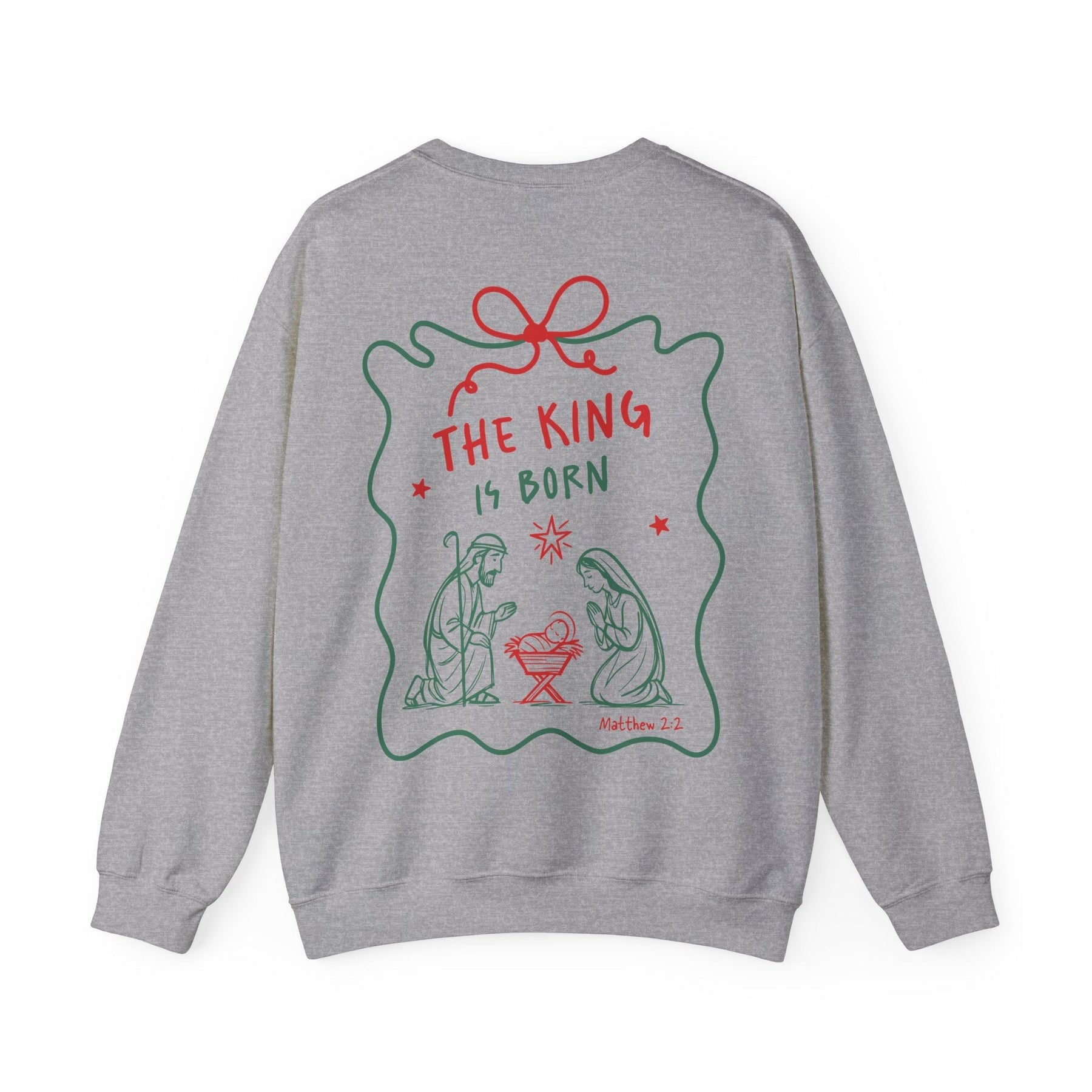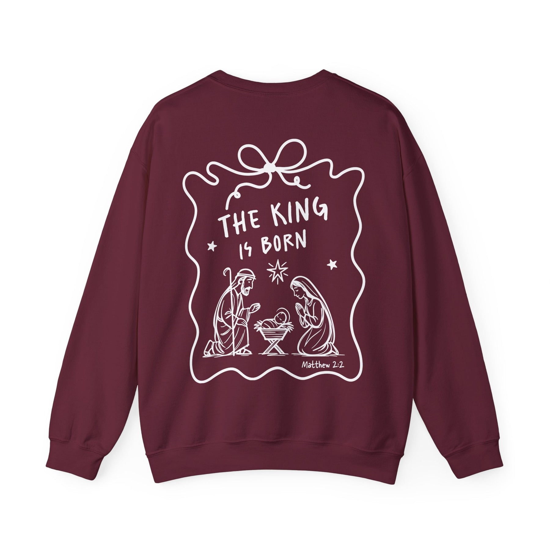 Coquette Bow Crewneck Sweatshirt - 'The King is Born' Faith Design