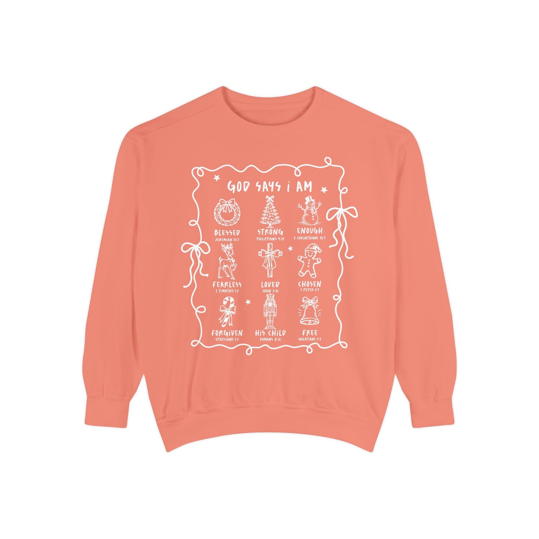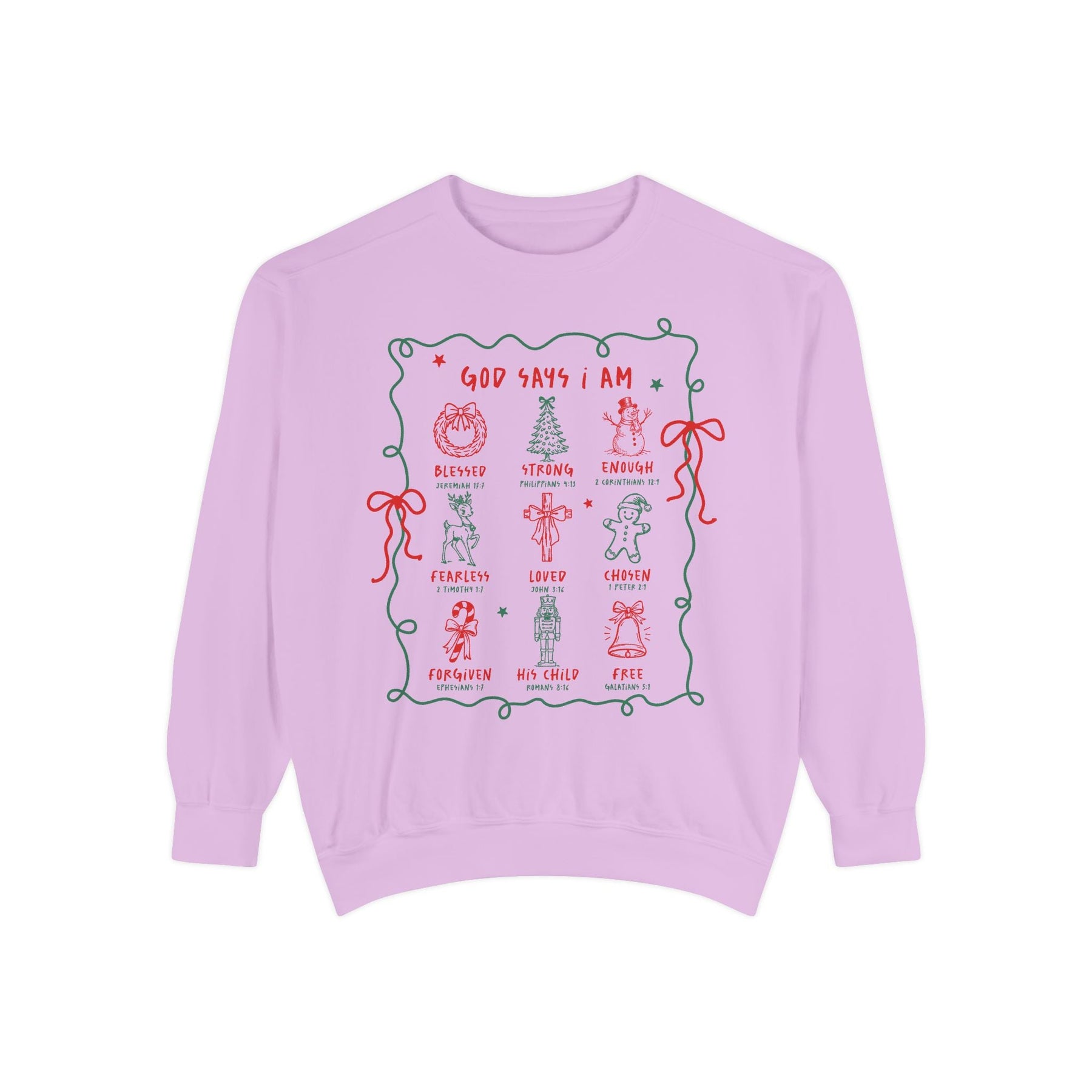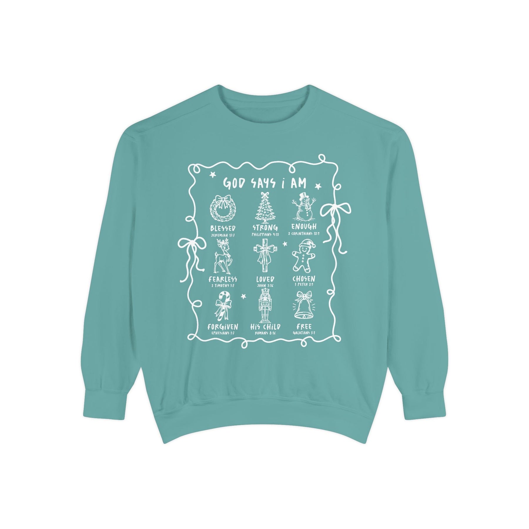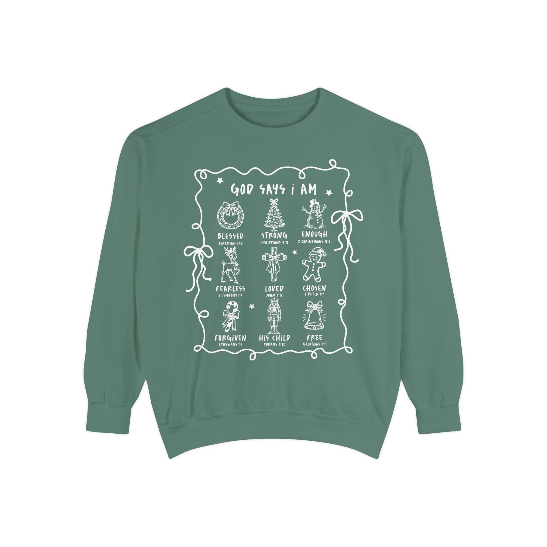 “God Says I Am” Inspirational Crewneck – Blessed, Strong, Enough | Bible Verse Sweatshirt by Brew’d Up Designs