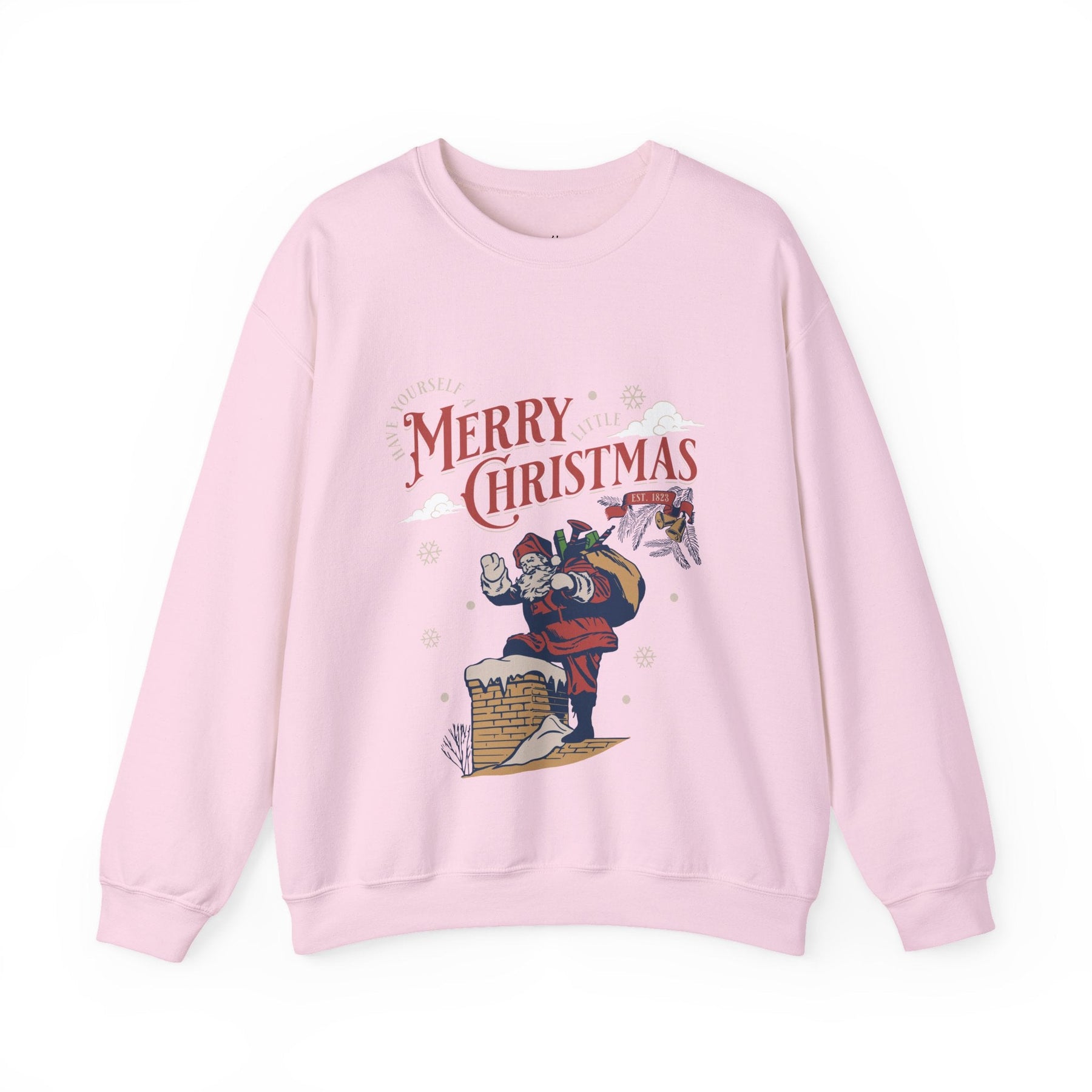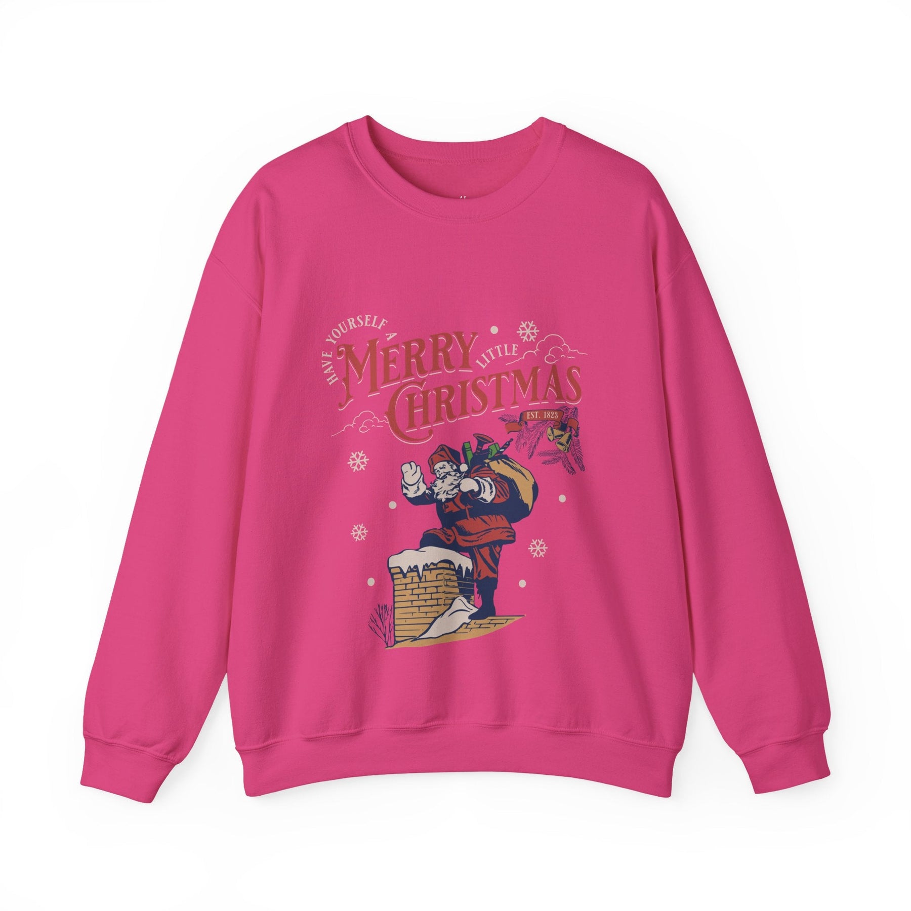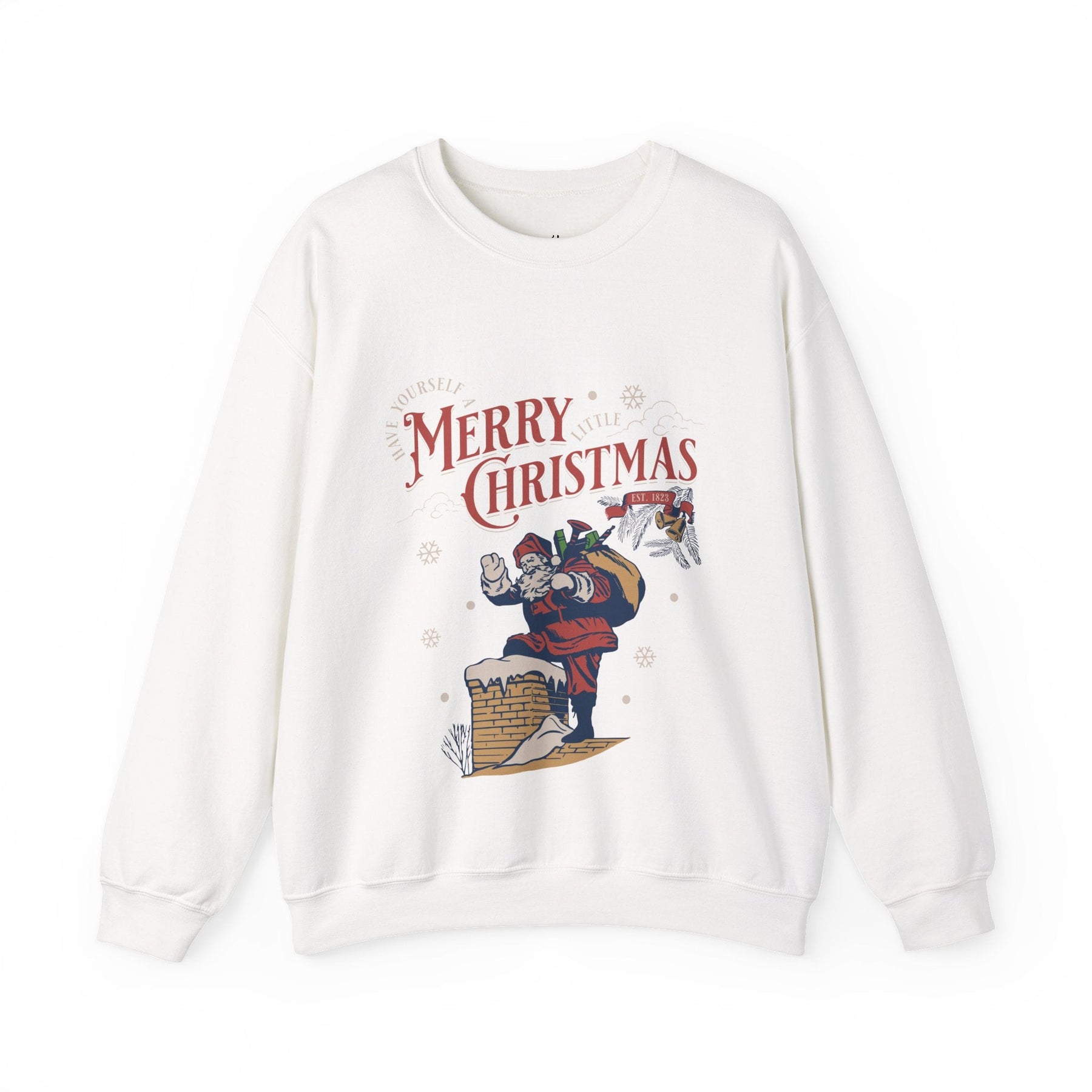 Vintage Santa Crewneck – Santa with Gift Bag Going Into Chimney | Holiday Sweatshirt by Brew’d Up Designs