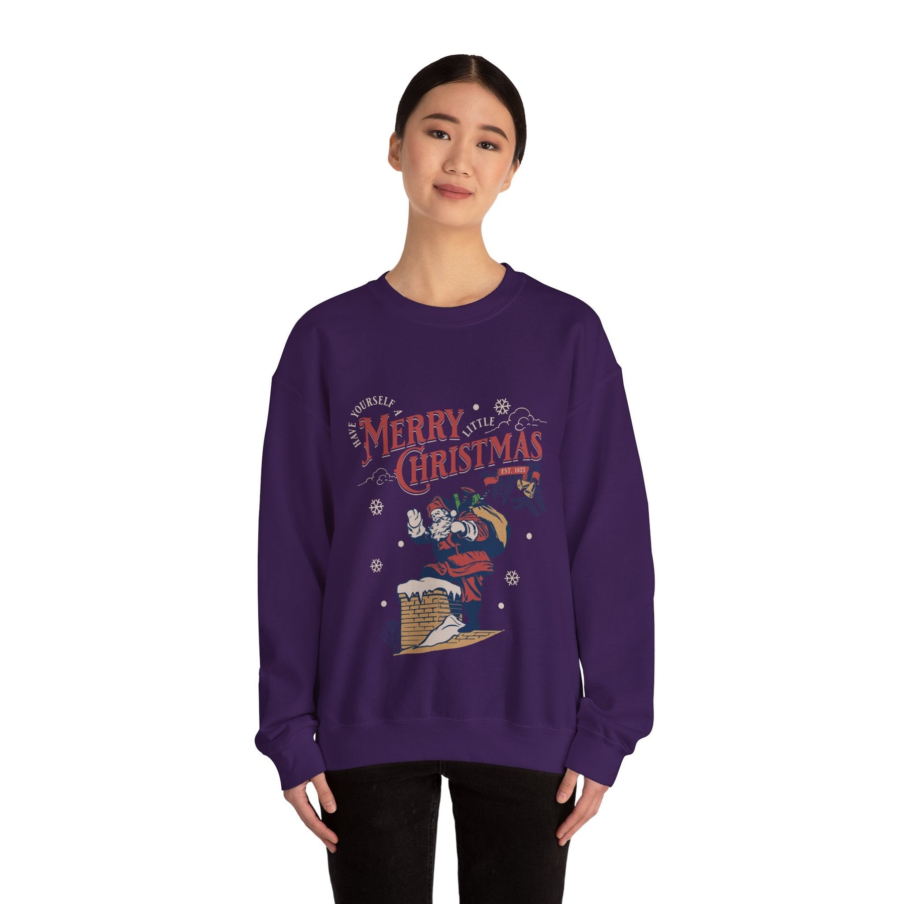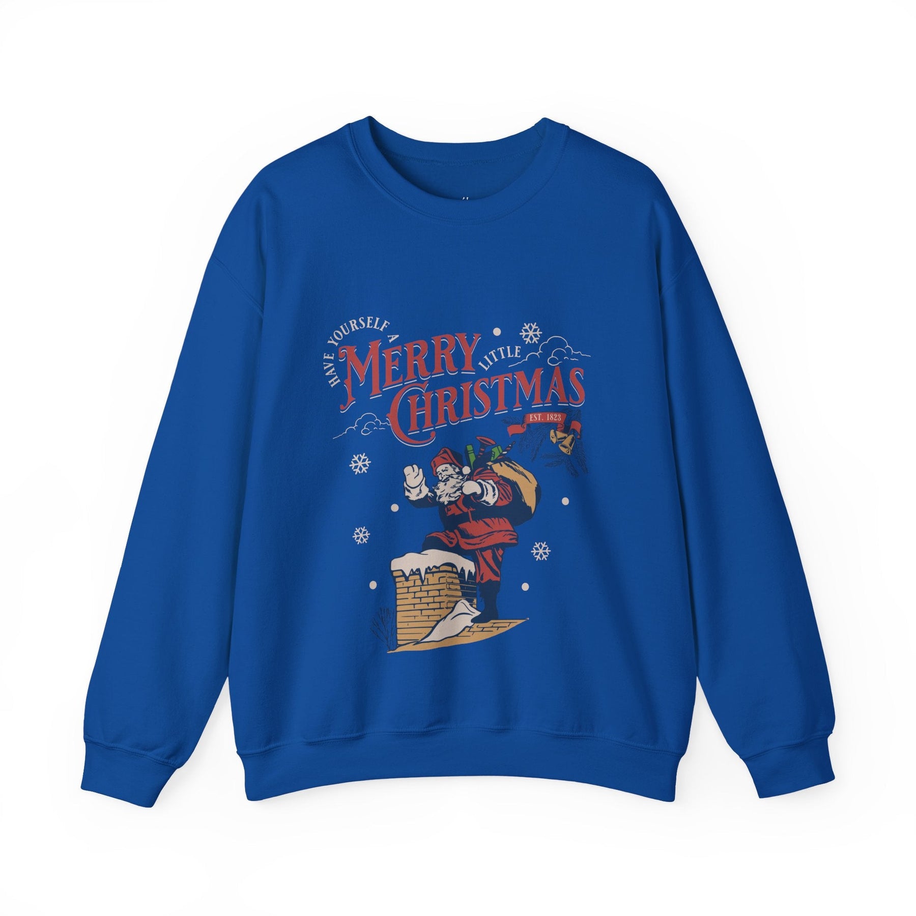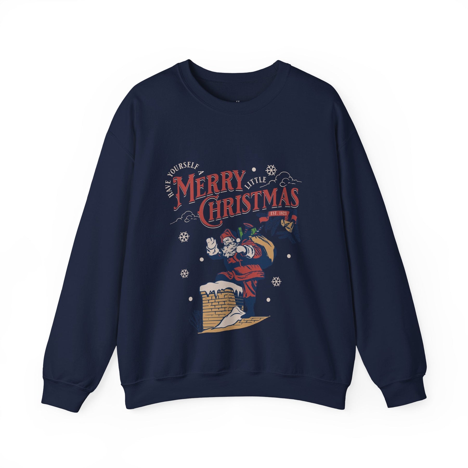 Vintage Santa Crewneck – Santa with Gift Bag Going Into Chimney | Holiday Sweatshirt by Brew’d Up Designs