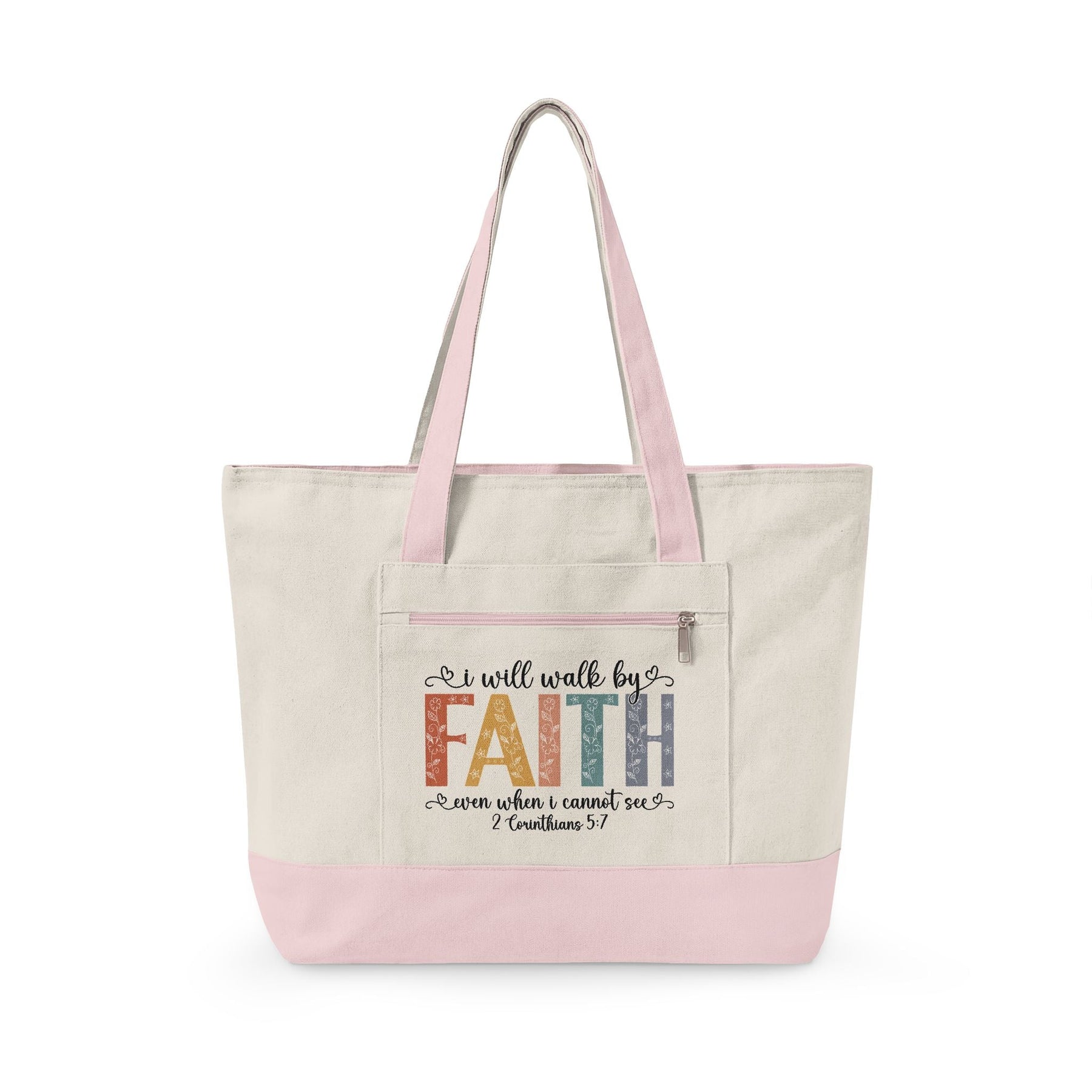 Easter Canvas Tote Bag with Christian Bible verse and zippered compartments