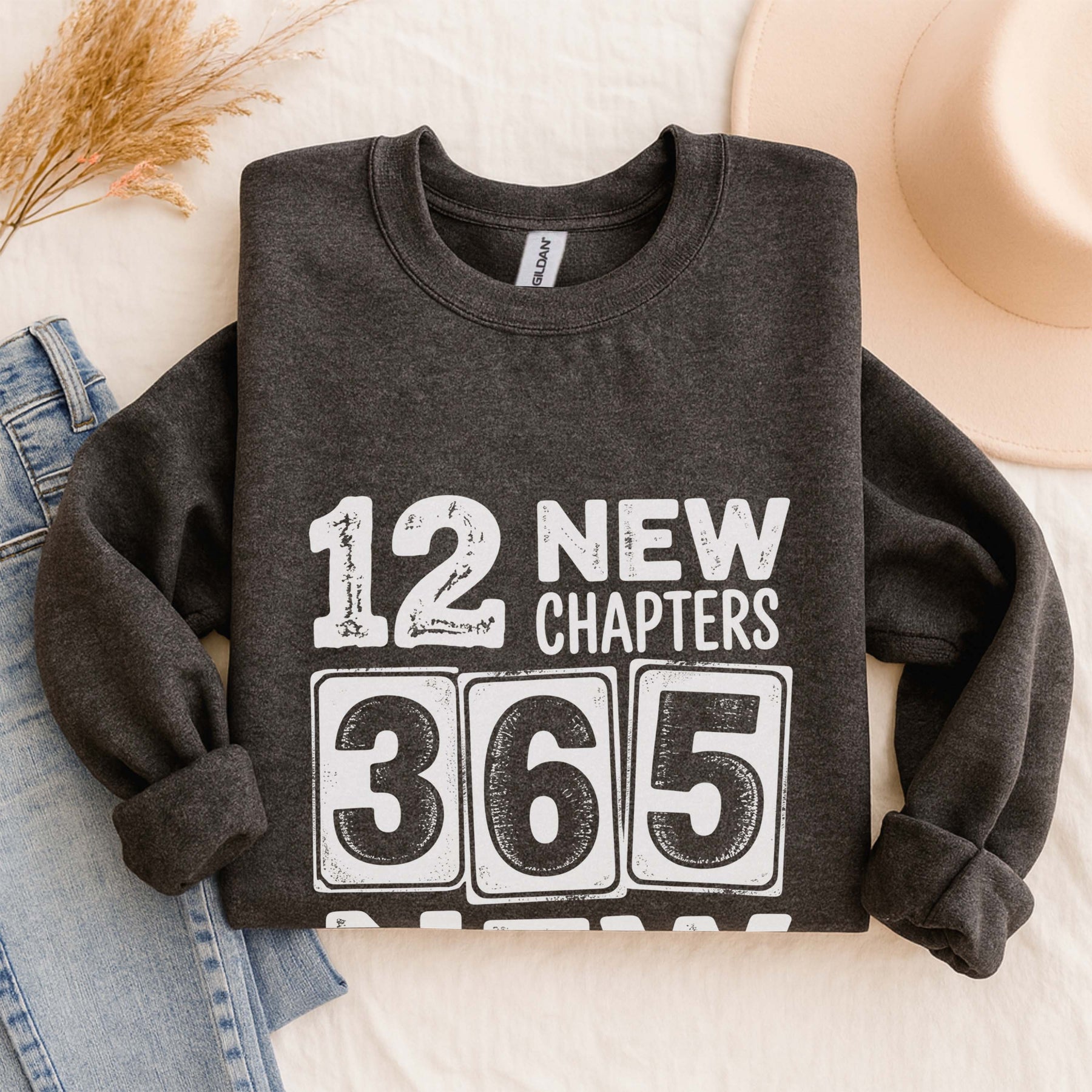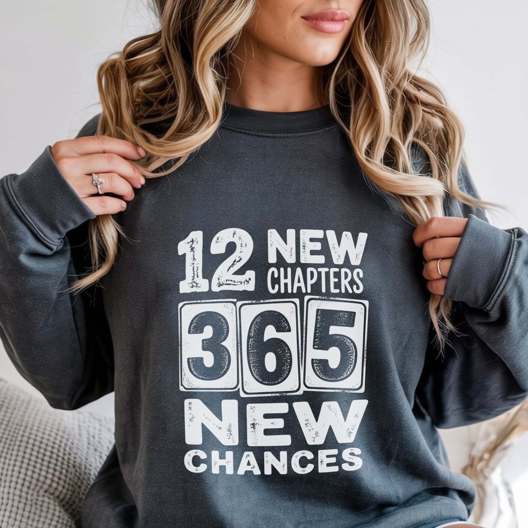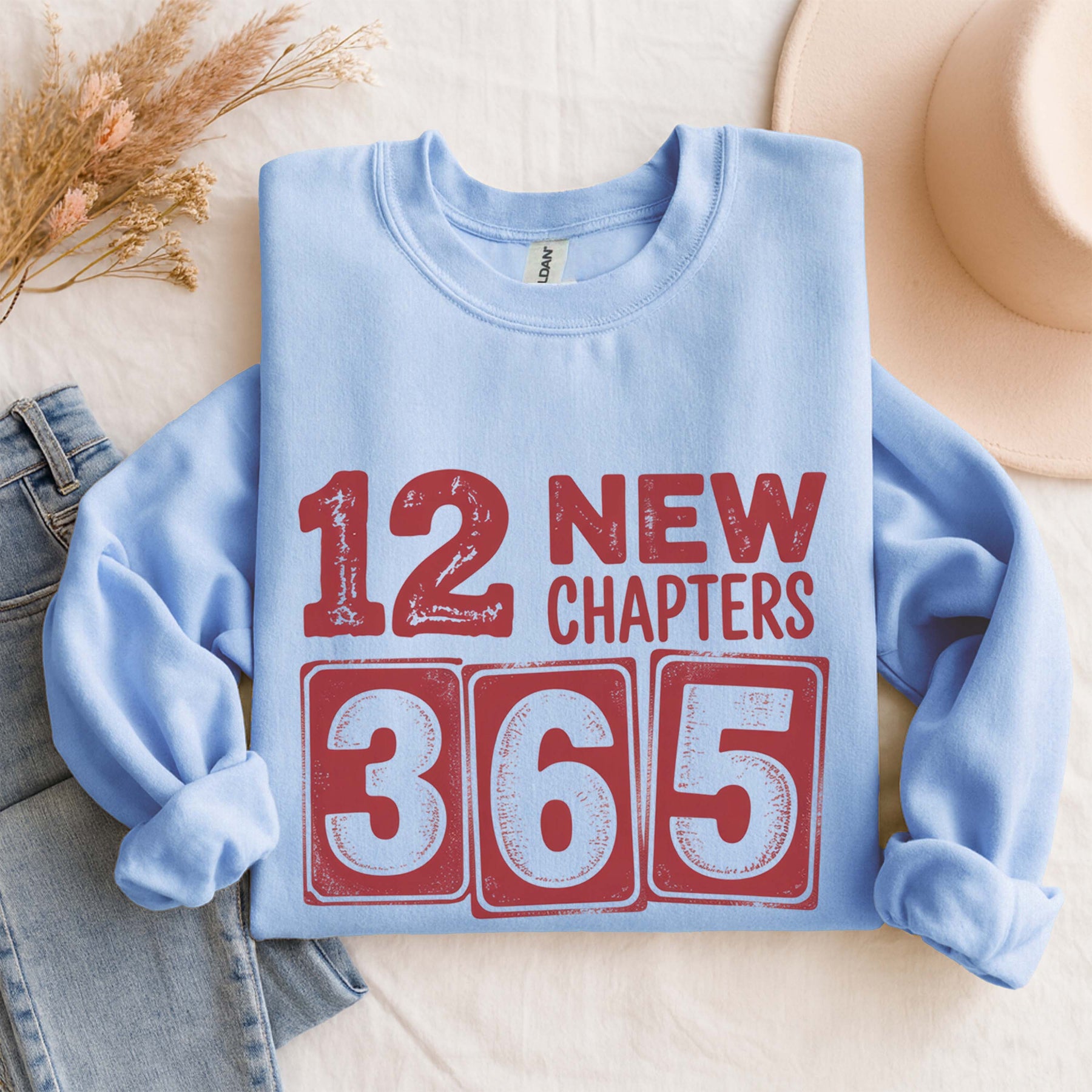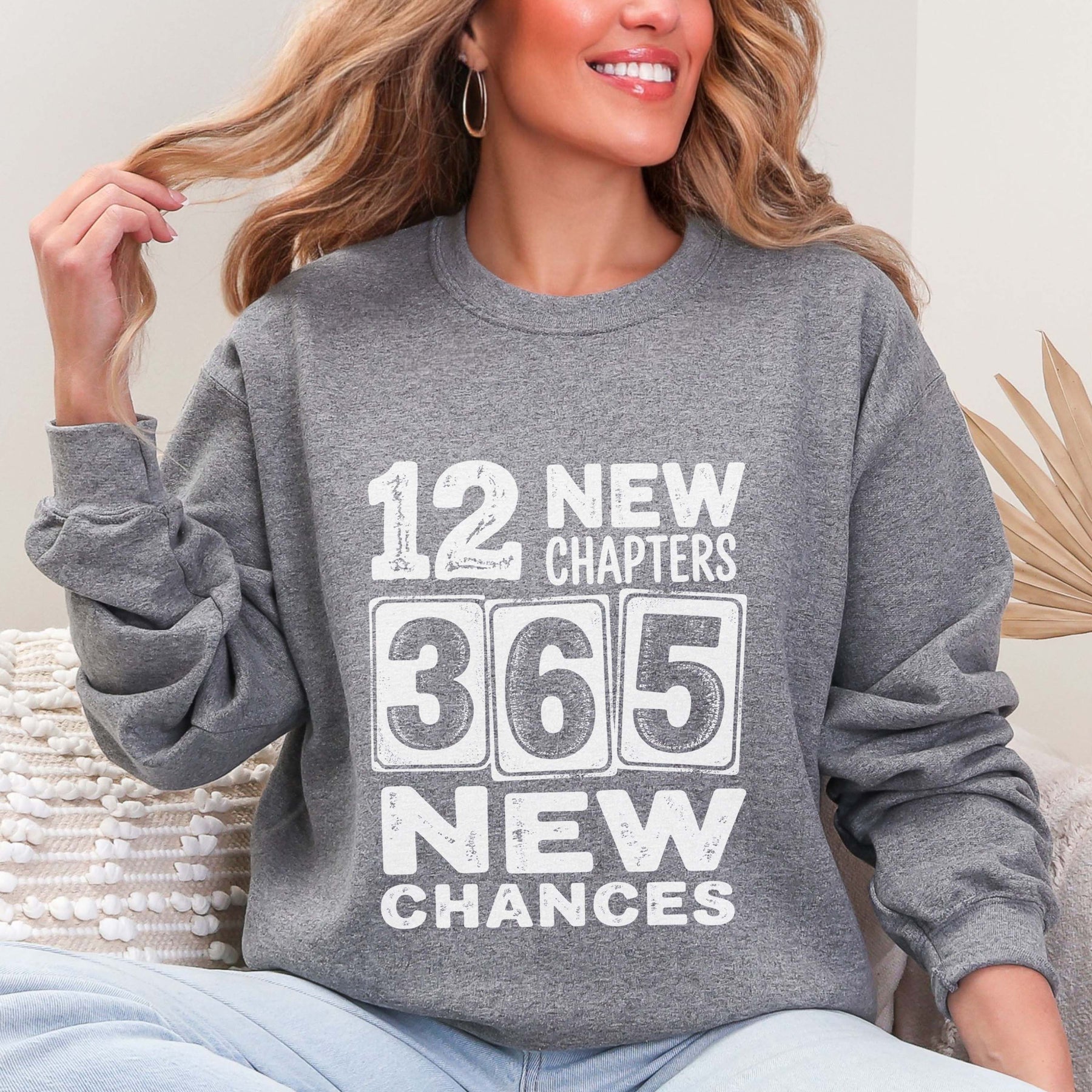 12 New Chapters 365 New Chances Sweatshirt | New Year Resolution Crewneck | Gildan 18000 Unisex Fleece