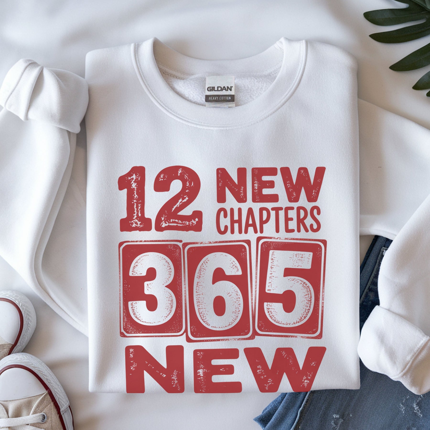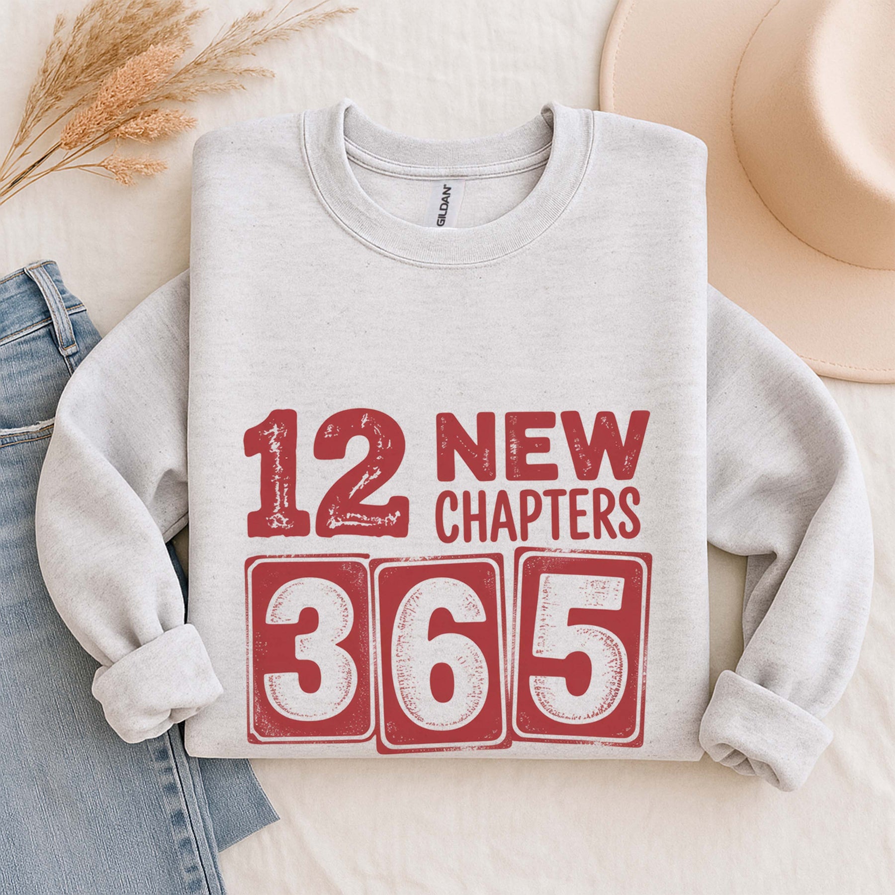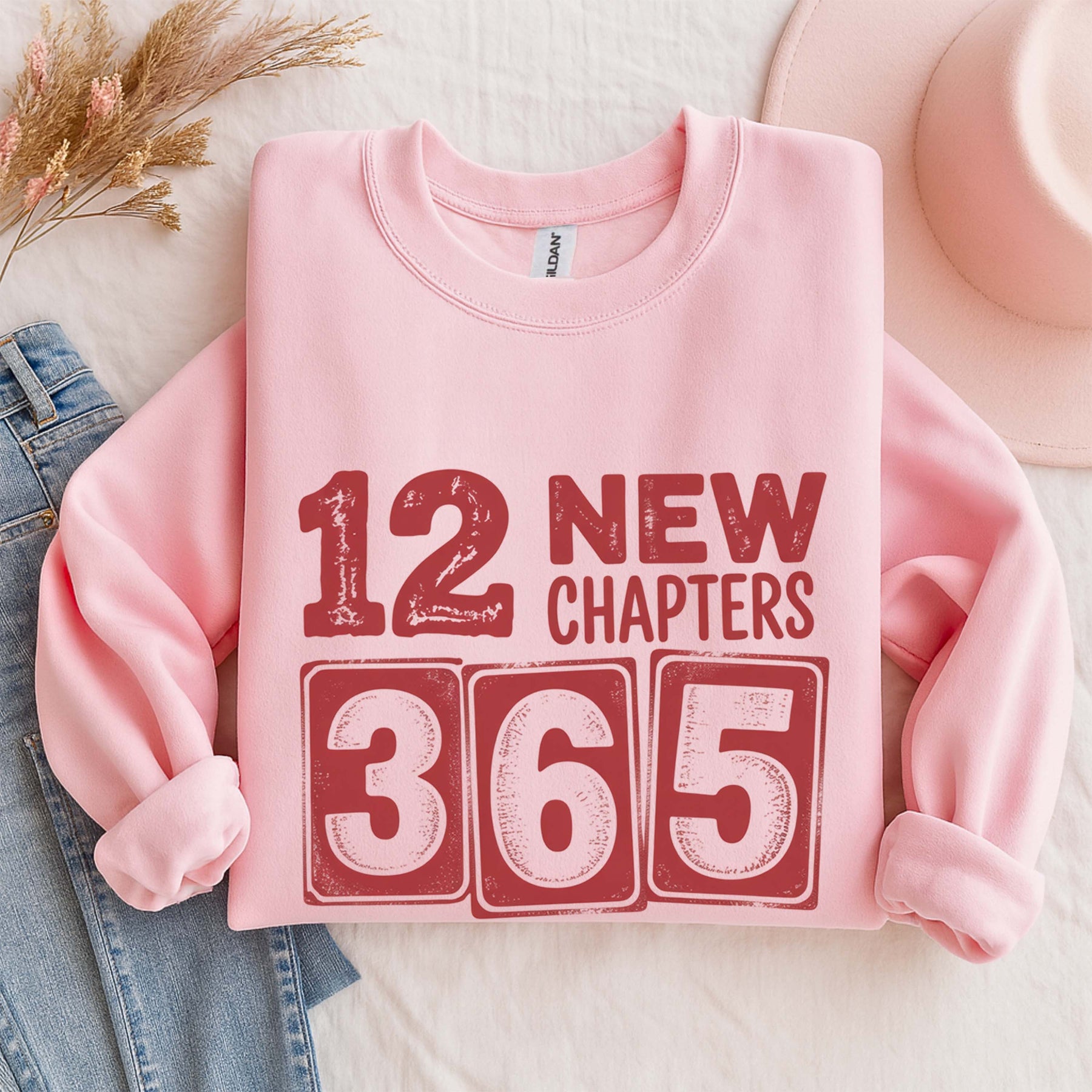 12 New Chapters 365 New Chances Sweatshirt | New Year Resolution Crewneck | Gildan 18000 Unisex Fleece