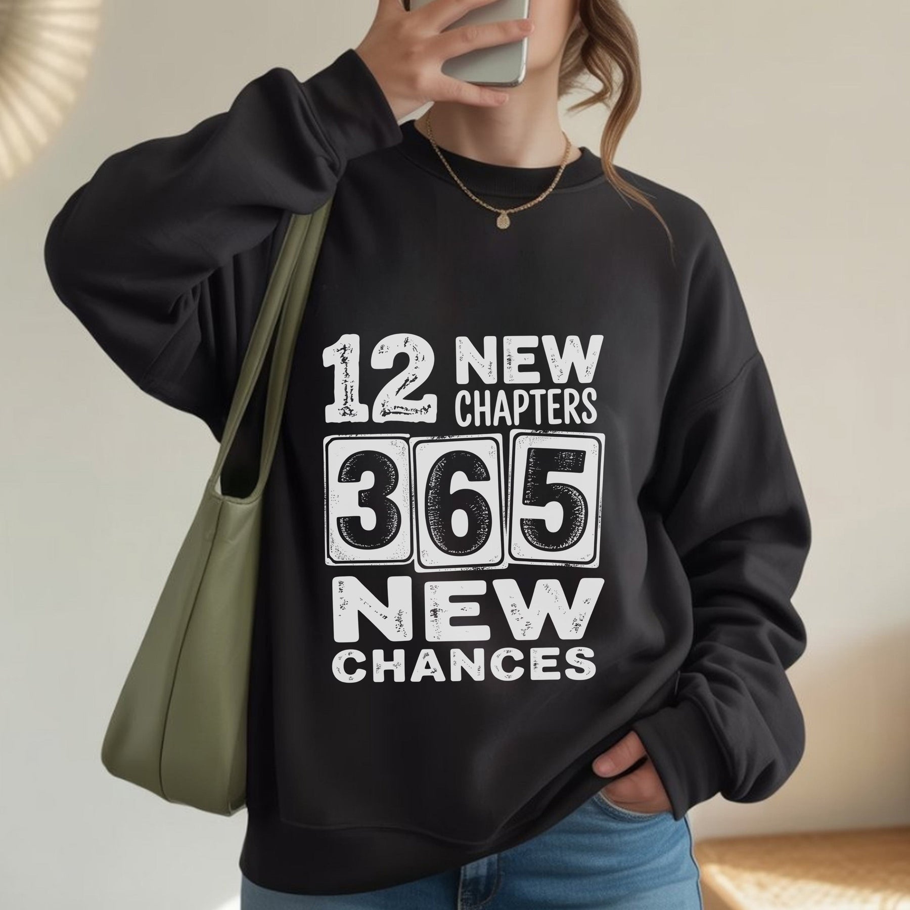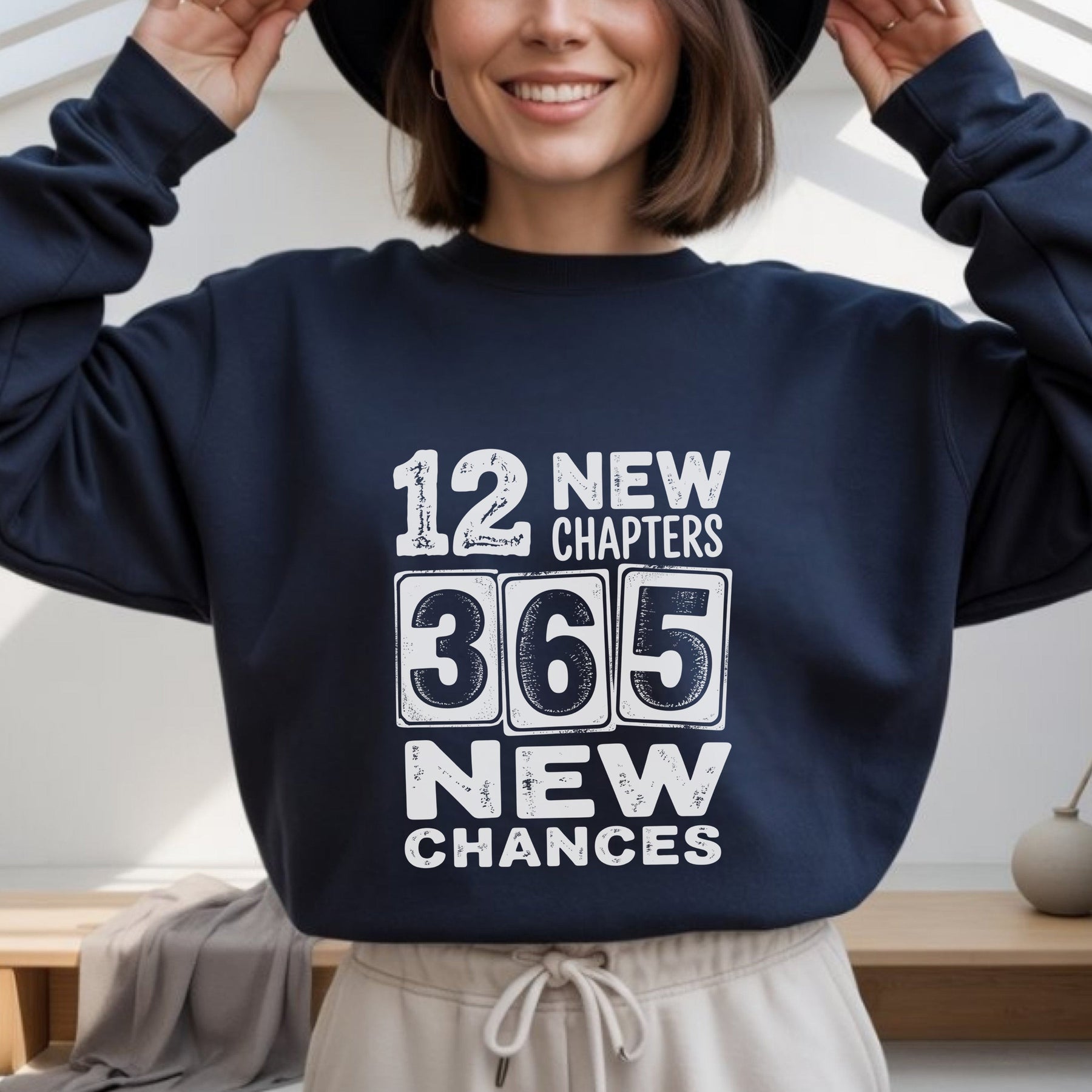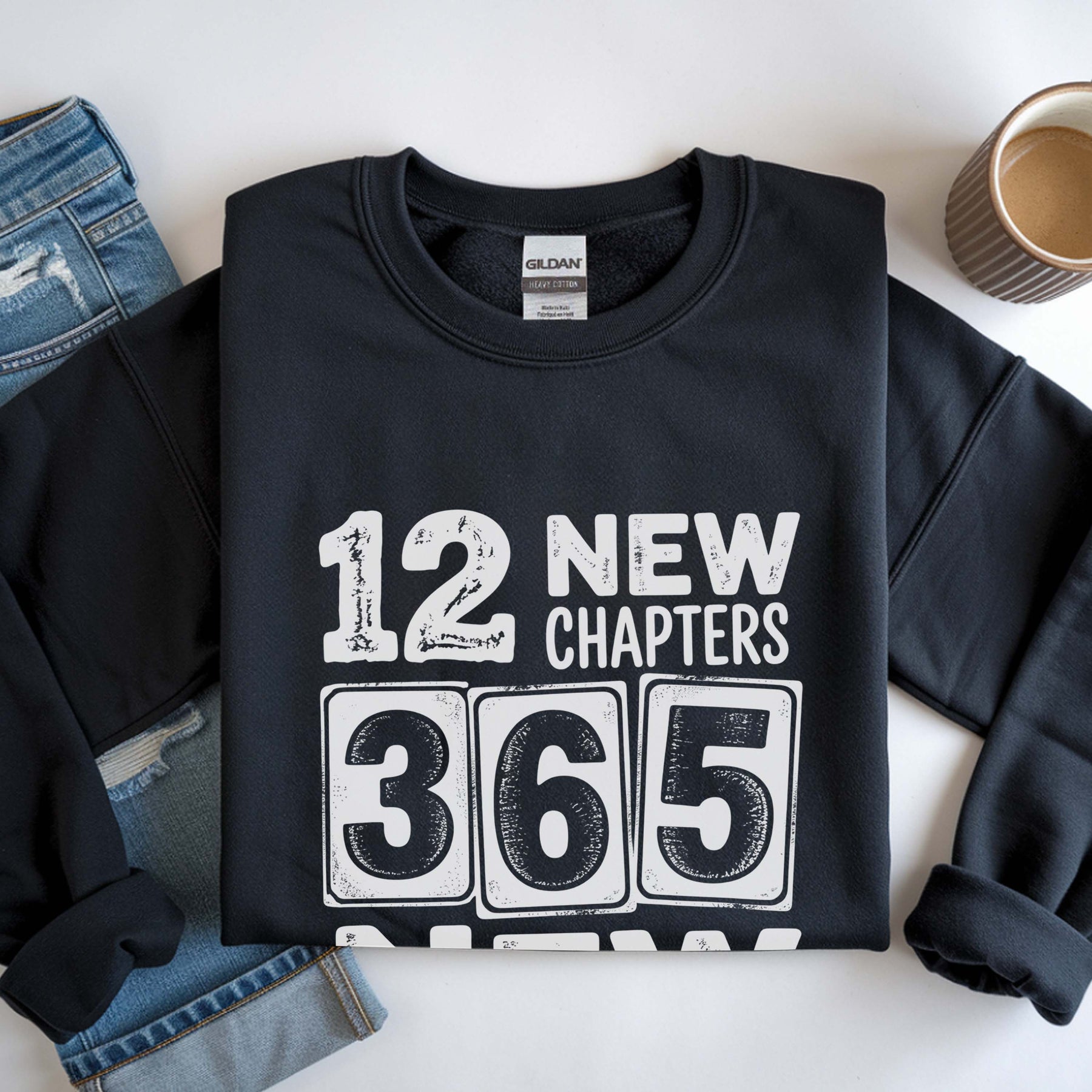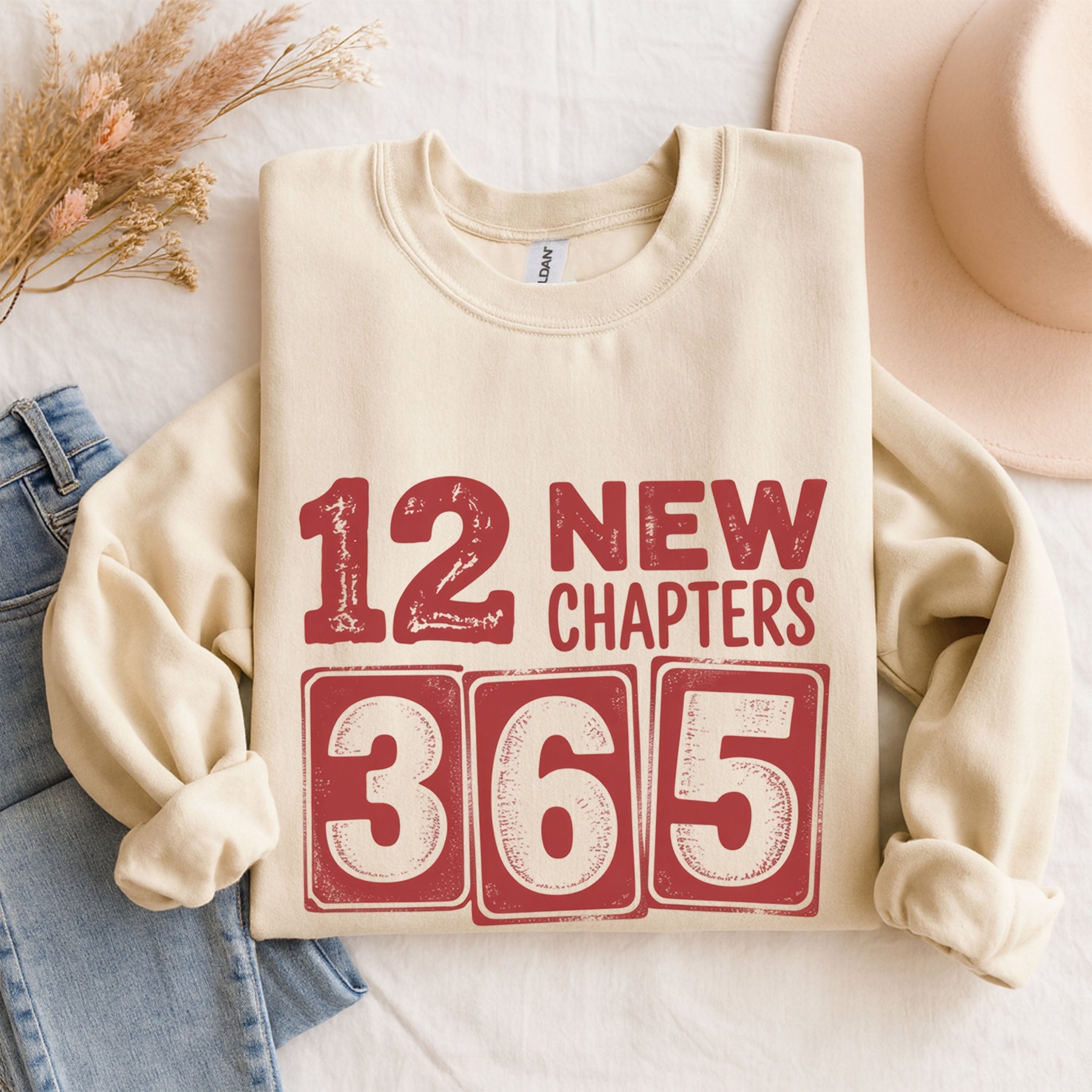 12 New Chapters 365 New Chances Sweatshirt | New Year Resolution Crewneck | Gildan 18000 Unisex Fleece