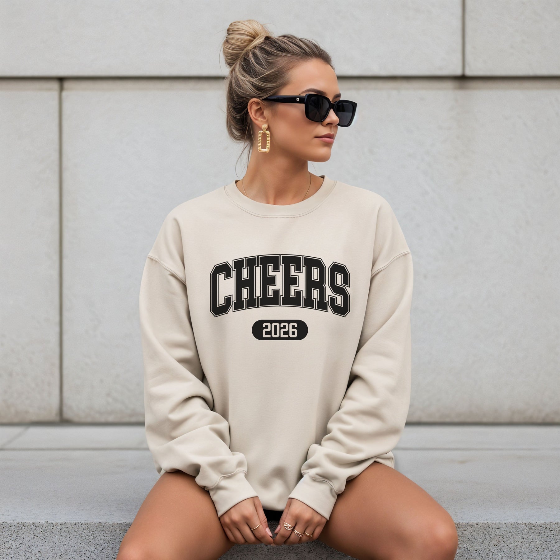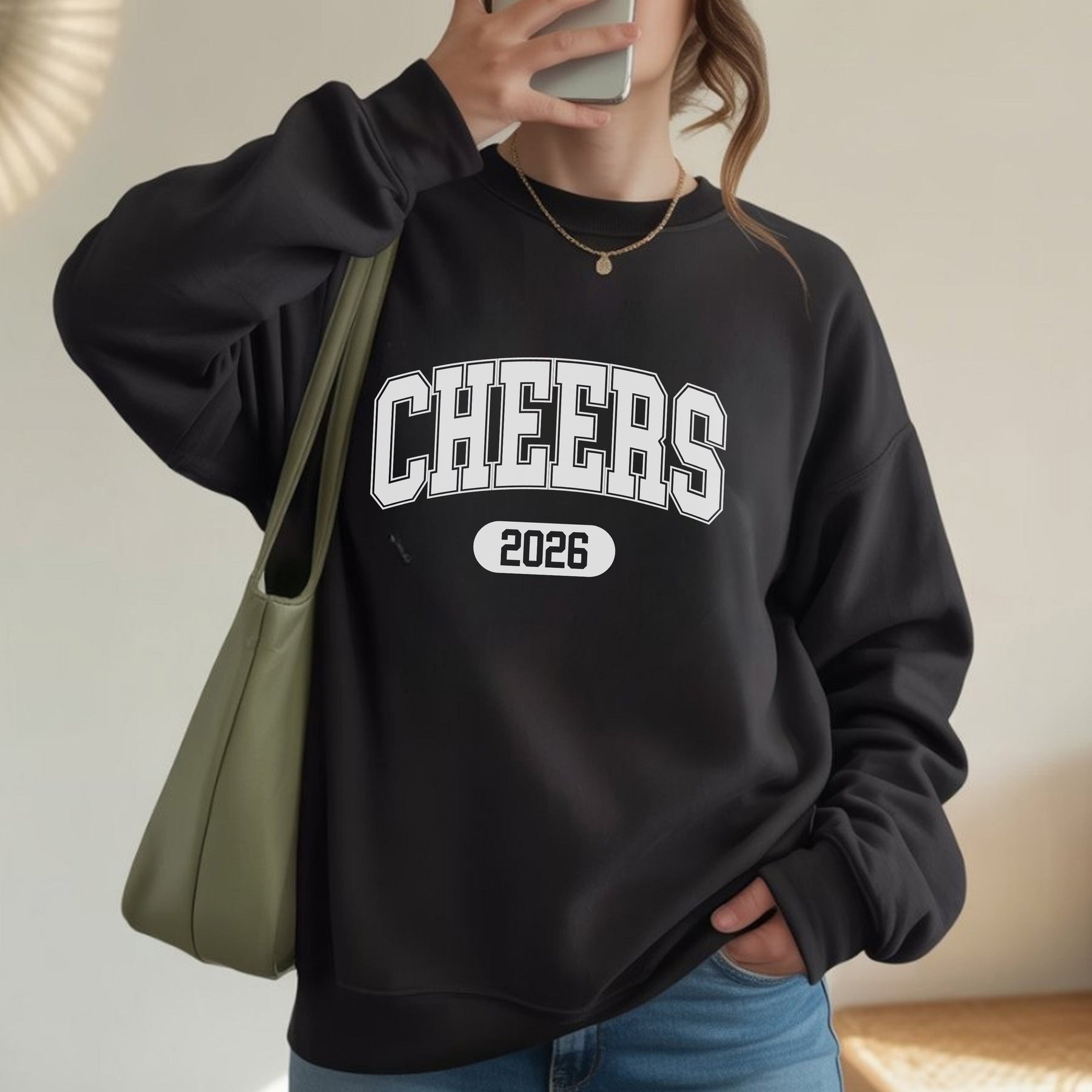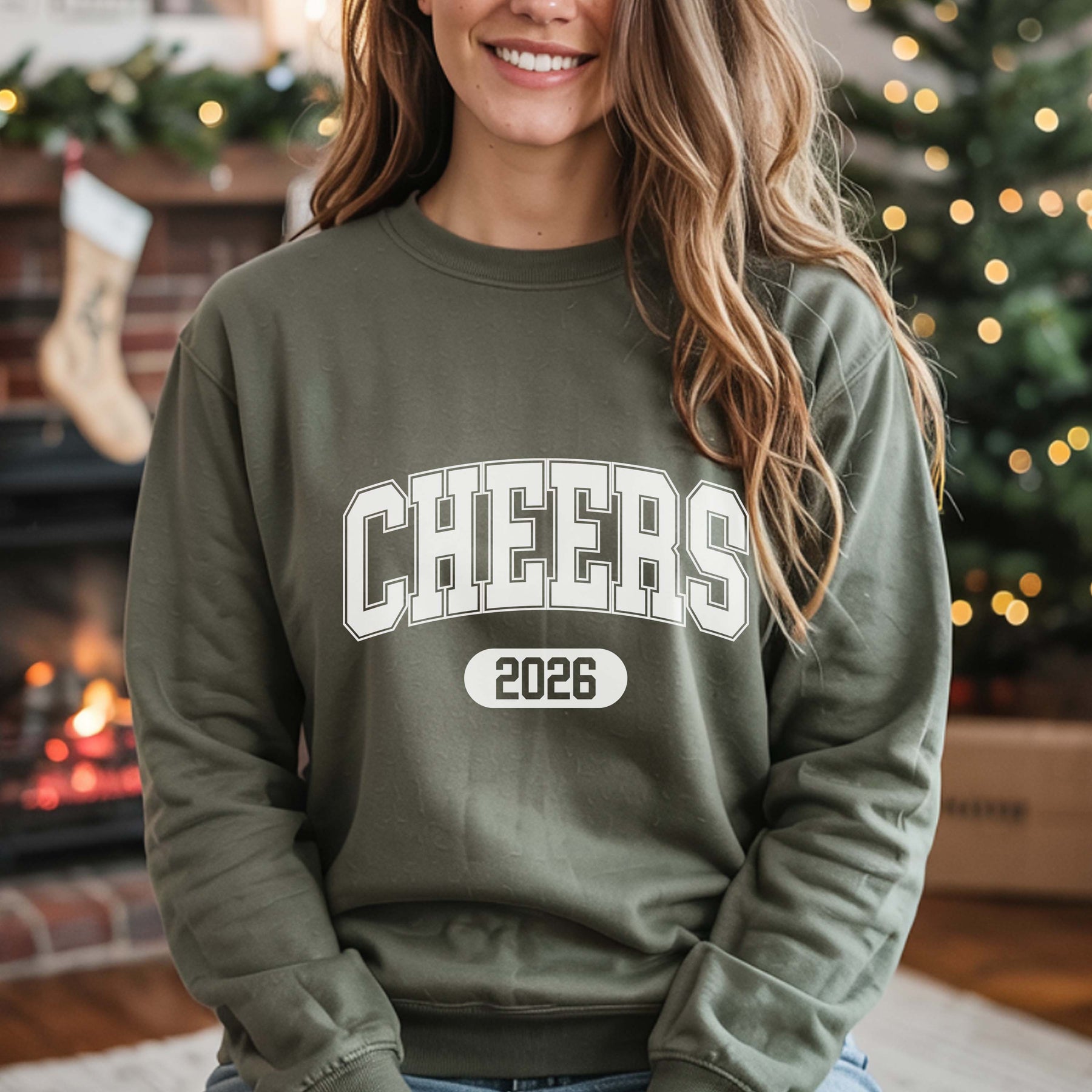 Ring in the New Year in cozy style with this Cheers 2026 Crewneck Sweatshirt, printed on the bestselling Gildan 18000 Heavy Blend. Designed with a bold varsity-style “Cheers” graphic and a clean “2026” detail, this sweatshirt is the perfect New Year’s Eve outfit for parties, photos, cozy nights in, or winter celebrations.