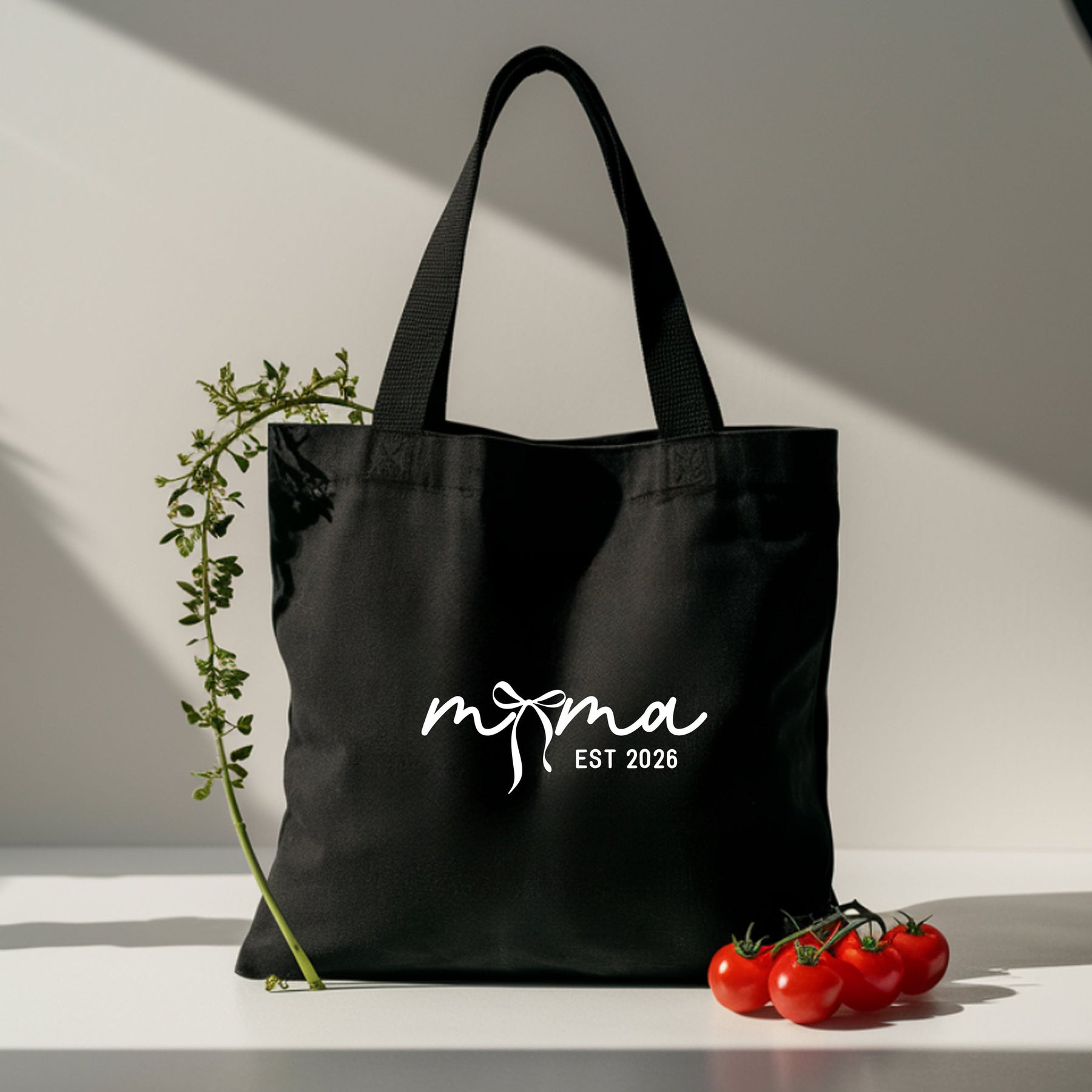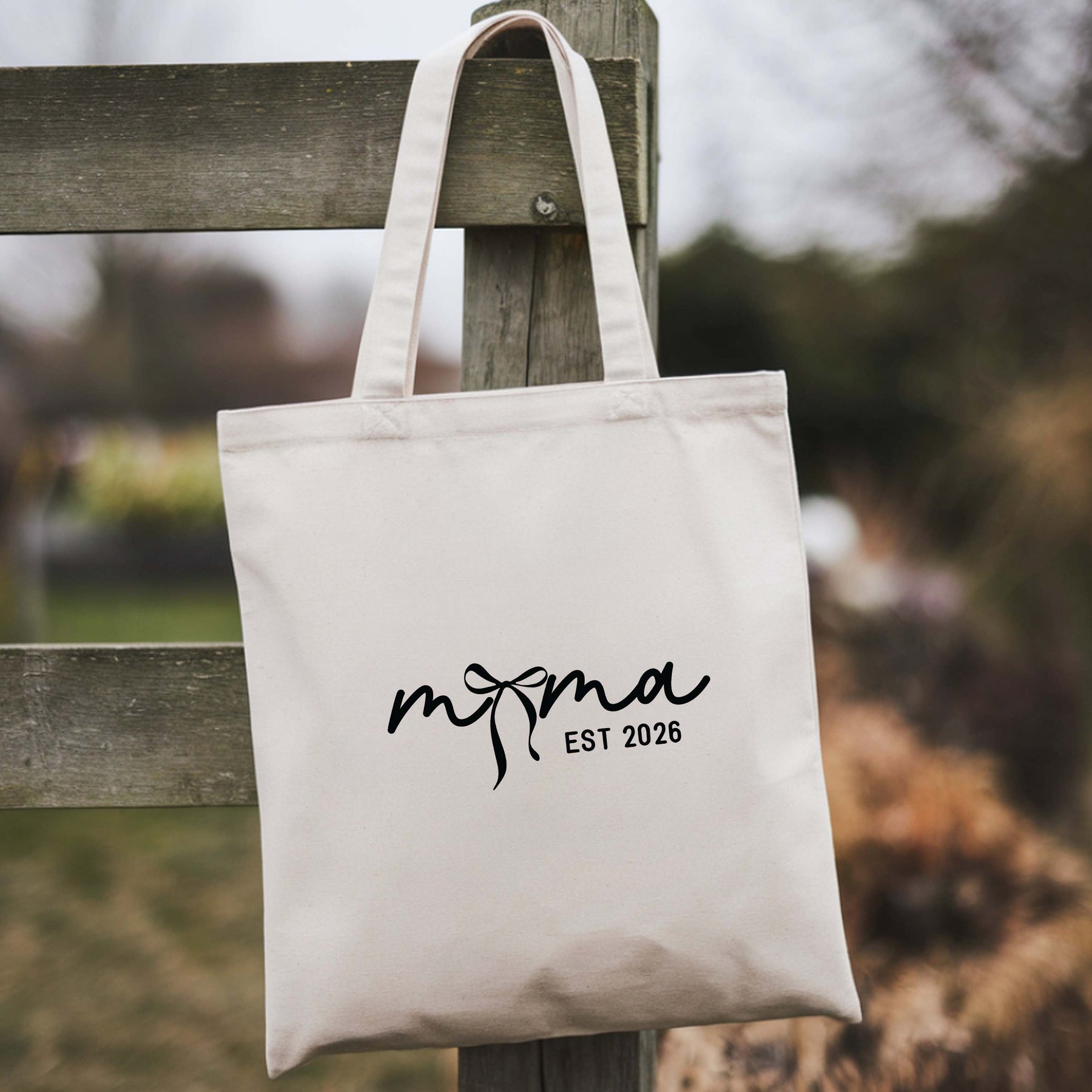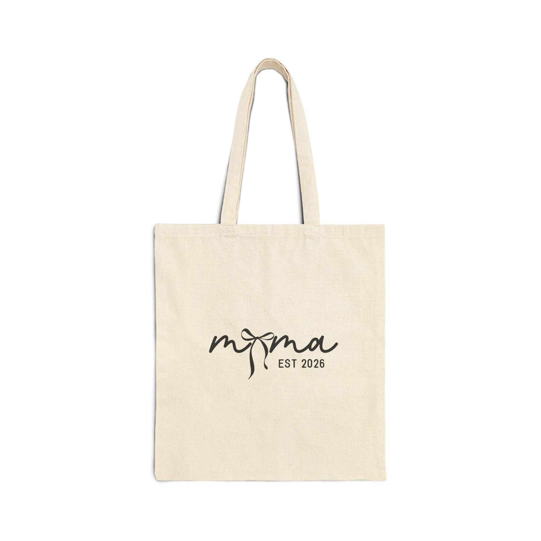 Coquette Bow Mama EST 2026 Cotton Tote – Cute Minimal Mom Bag, Natural & Black Options