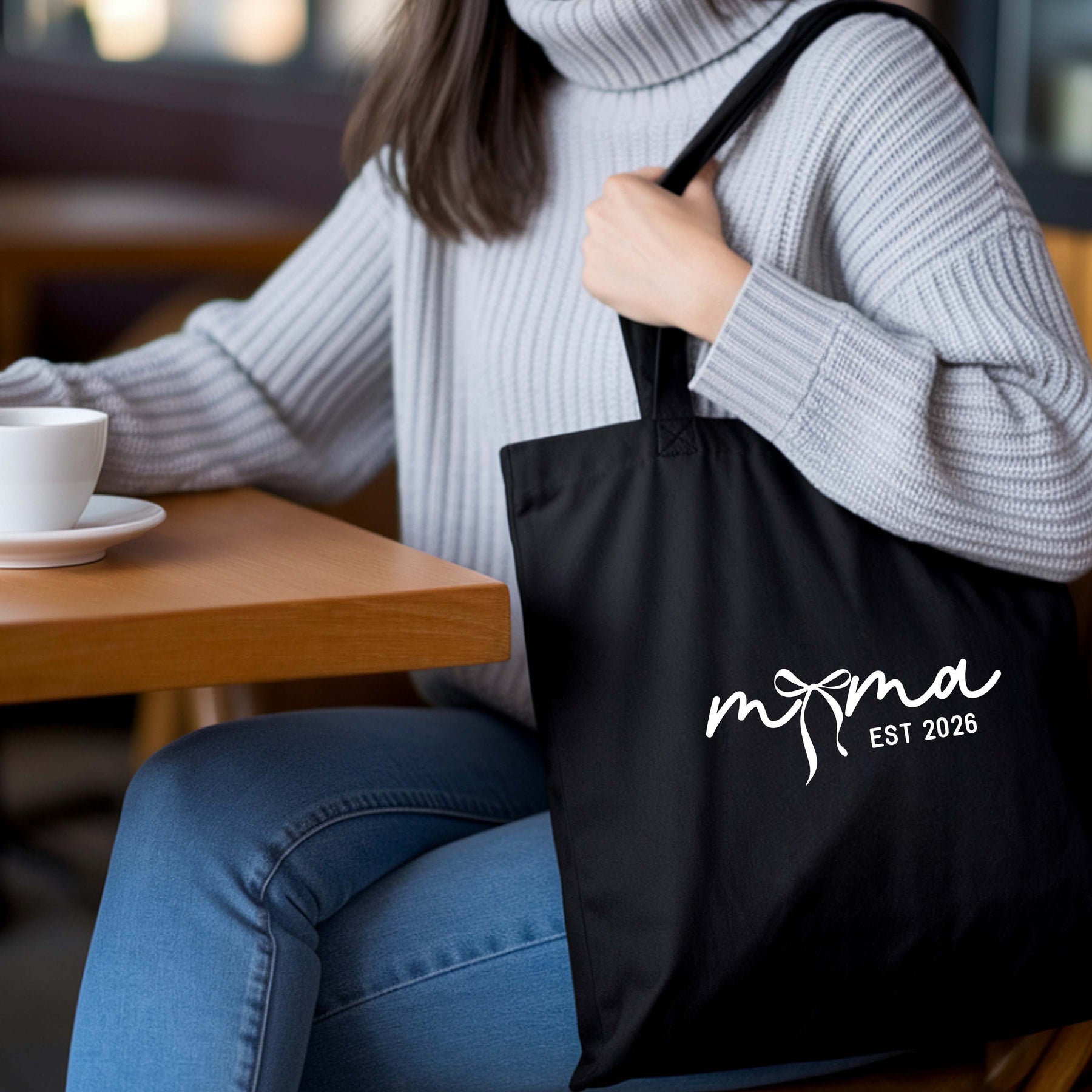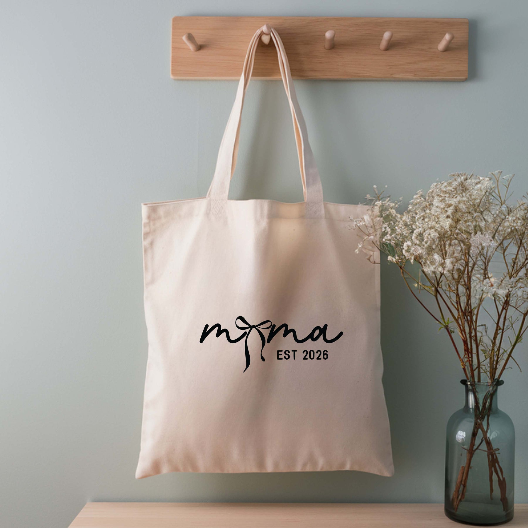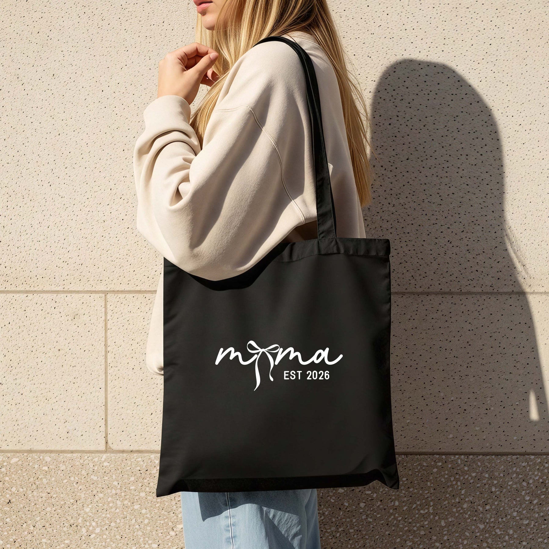 Coquette Bow Mama EST 2026 Cotton Tote – Cute Minimal Mom Bag, Natural & Black Options
