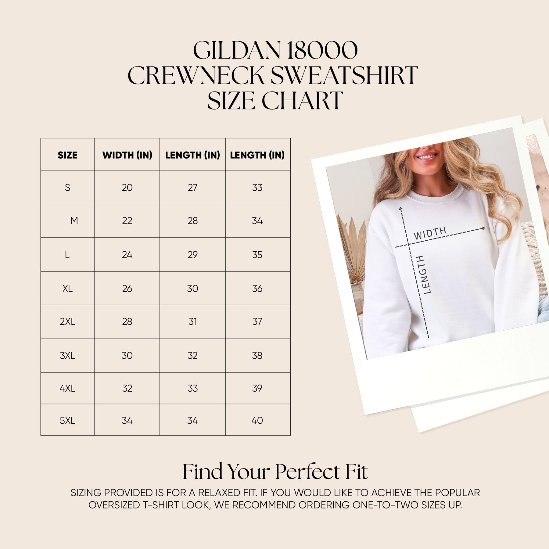Iced Coffee Obsessed Mama Crewneck Sweatshirt size chart with measurements and fit guide