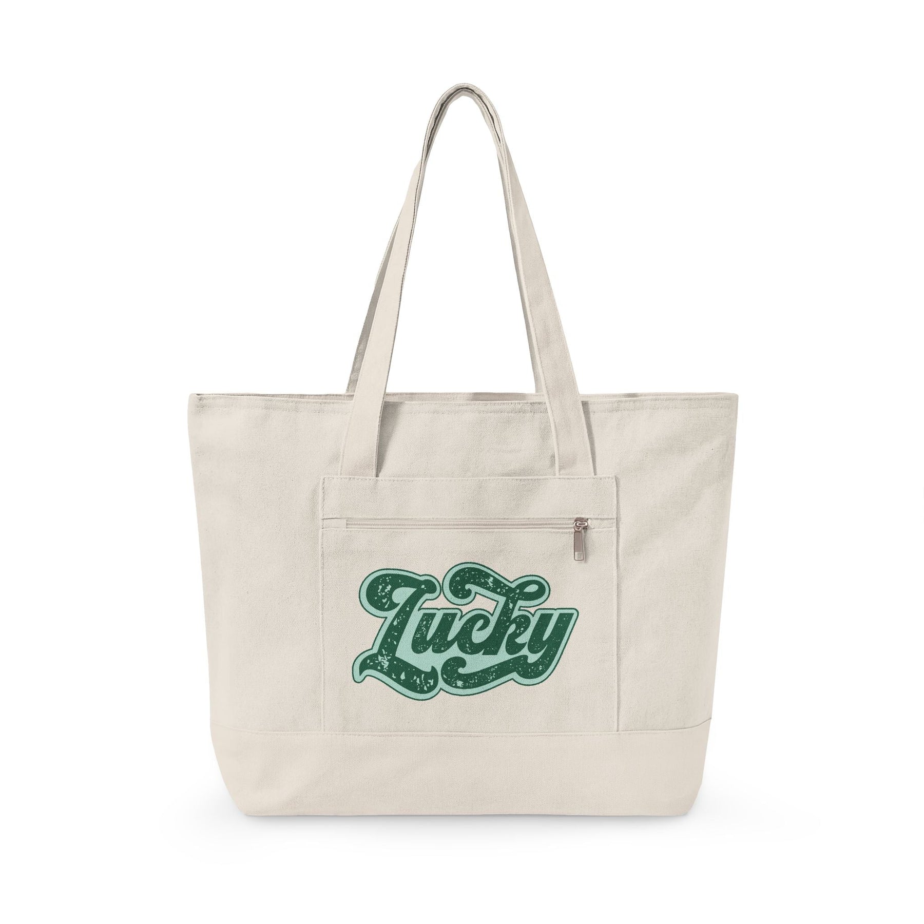 Lucky Retro Canvas Tote zippered heavy-duty cotton bag with shoulder handles