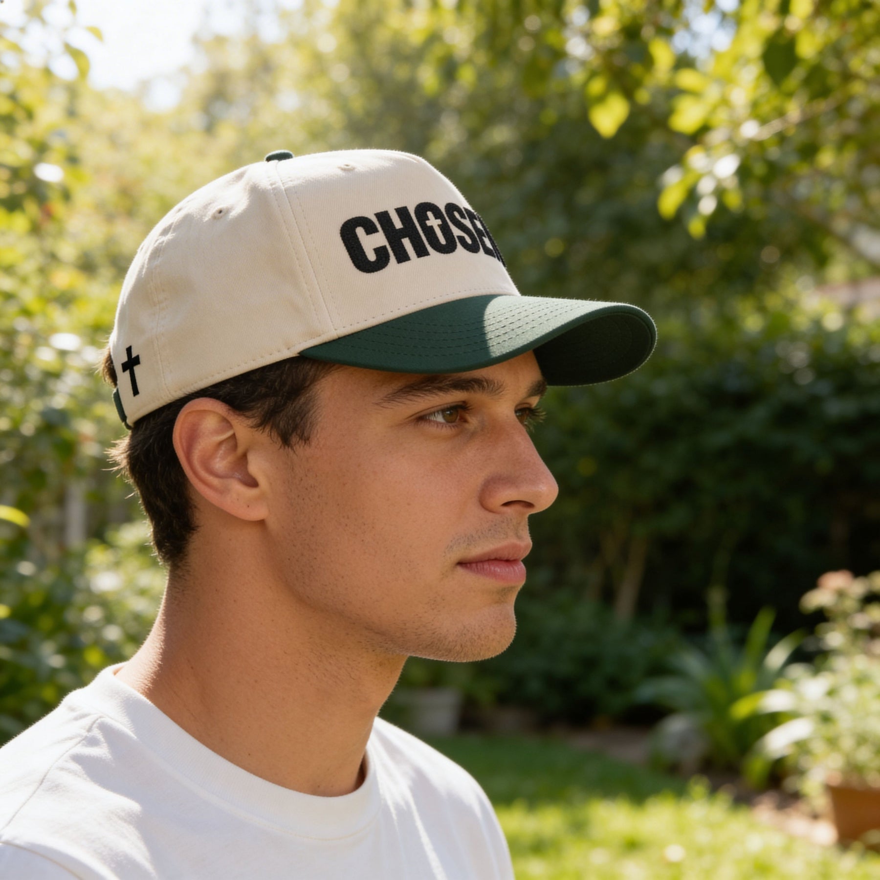 Chosen Faith Mid Hat structured 5-panel cap with seamless front panel and adjustable snap closure